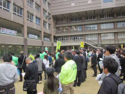 京都御池中学には,たくさんの方が集合していました。
