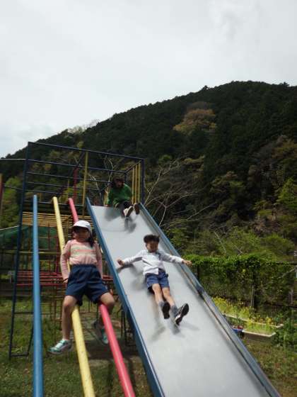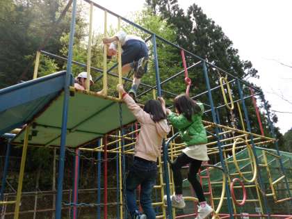 青空のもと,元気いっぱい遊んでいます。