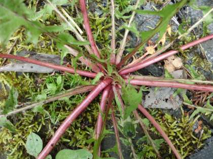 春の花がそこかしこに咲いています。たんぽぽを真上から見ると放射状に葉を広げています。