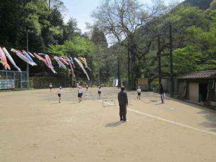 短距離走とハードル走です。4年生は6年生がお手本です。