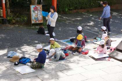 叡電に乗り,鞍馬寺に到着しました。さあ,どんな絵を描こうかな…。