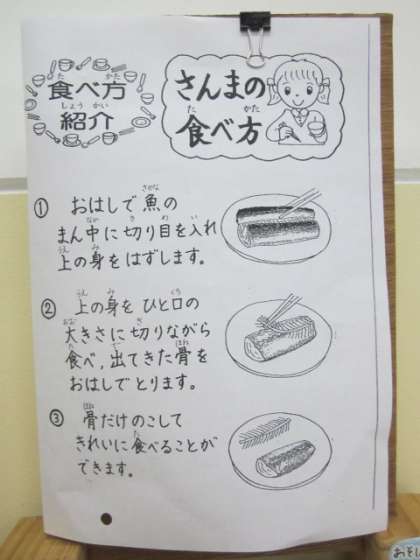 今日の給食には【さんま】があります。給食カレンダーを見ると…