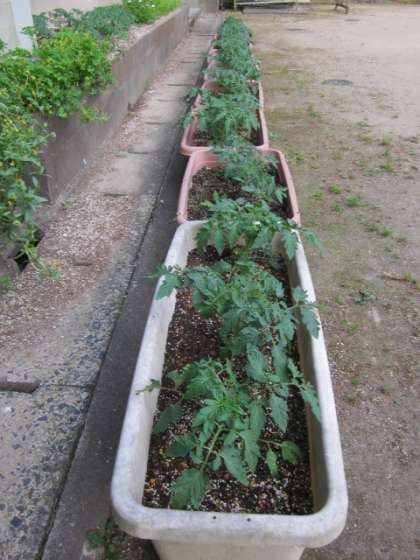 「私のトマト,大きくなってる〜!」