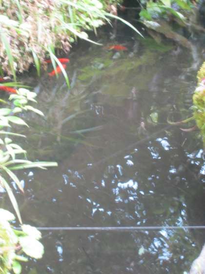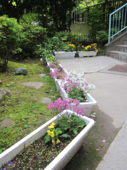 金魚が元気に泳いでいます。プランターのお花も次々咲いています。