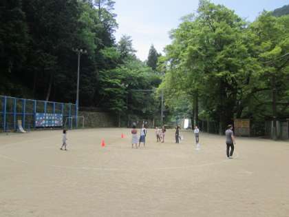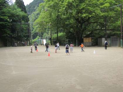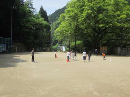 1年生も一緒に遊べる“転がしドッジボール”を楽しみました。