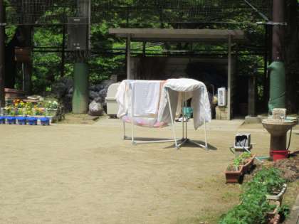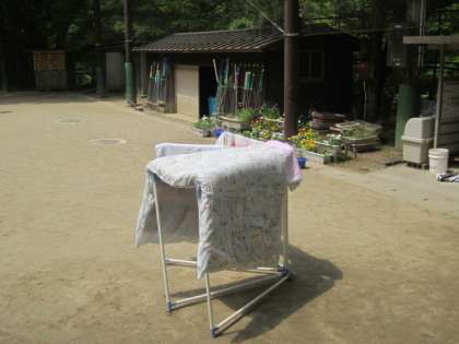保健室の布団干しです。紫外線をたっぷり当てています。