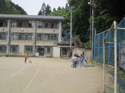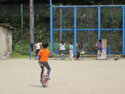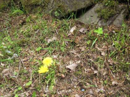 一輪車で遊ぶ横に,“季節外れのタンポポ”が咲いていました。