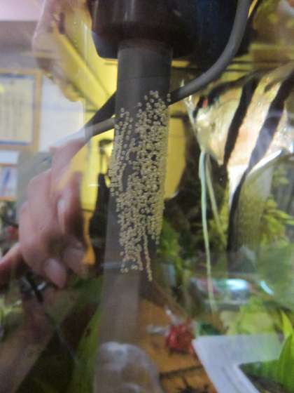 前回の『エンゼルフィッシュの産卵』では,産んでしばらくして,別の容器に移す前に食べられたかもしれない…そうでした。