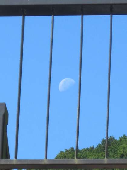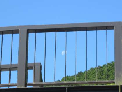 歩道橋に“朝の月”が…。鞍馬っ子は気付いたかな?