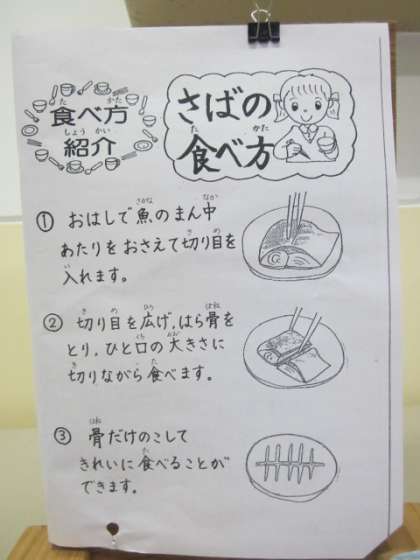 鯖(さば)の食べ方が解説されています。みんなできましたか?