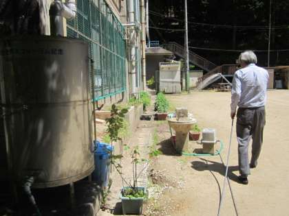 事務職員が水やりをしています。管理用務員は貴船ダイオウの世話に行っています。