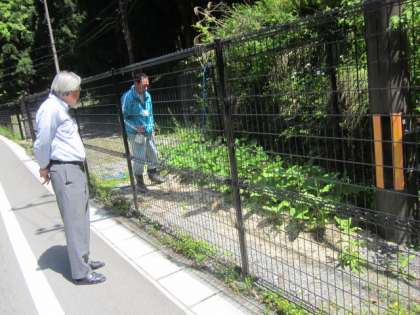 管理用務員さんが,防虫剤をまいています。しばらく様子を見ます。