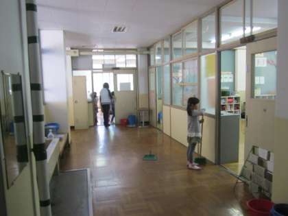 大人も子どもも,みんなでお掃除します。きれいになったかな?