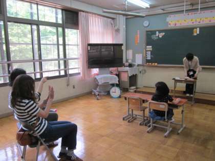 1年生にとっては,初めての日曜参観日です。保育園の先生が,微笑んでくださいました。