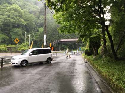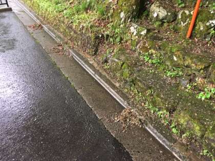 雨の中,雨がっぱを着ての清掃です。細かな枝を集めています。