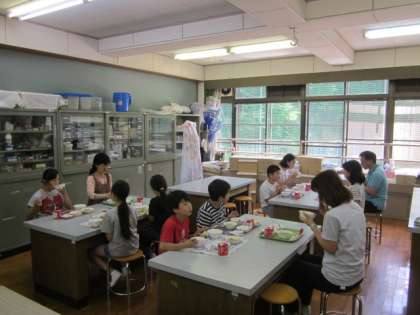 保健室の板垣先生・図書の川島先生・英語のドーシー先生も一緒に食べてくださいます。