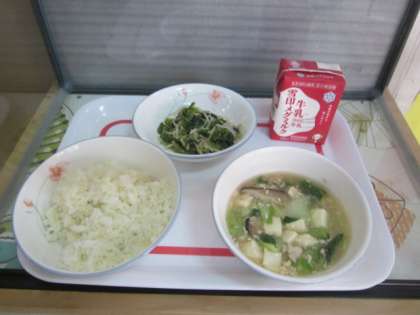 今日の給食は,『野菜たっぷり』でした。豆腐との相性も良かったです。