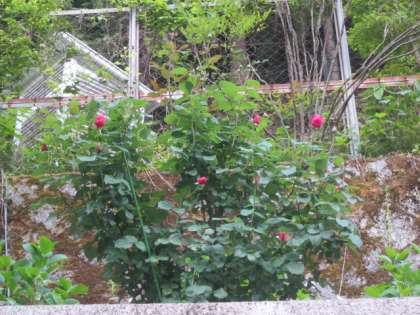 スロープの赤いバラ・ピンクのバラが,次々と開花し出しています。楽しみですね。