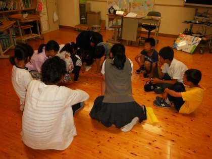 運動会取組期間にリーダーが不在だったり,けがをしたお友達がいてメンバーが他の色より少なかったりしてハンディのあった青組では,リーダーからメンバーに「成績は良くなかったけどみんな本当にがんばったから『心の一等賞』でした。」と言葉が贈られ,メンバーからリーダ−には「リーダーがいなくてリーダ−のありがたみがよく分かった。」「練習時間が少なかったのにリーダーはすごい!」と言葉が贈られました。負けていても常にメンバーを励まし続けたリーダーの姿から下級生もたくさんのことを学び「負けたけど,このチームで良かった。」と運動会を振り返っていました。他の色もそれぞれに運動会からの学びを確かめ合うことができたと思います。