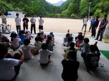 雨上がりのくもり空という「いも苗植え」には絶好のお天気の中,全校で安納芋のいも苗を学校園に植えました。色別にてきぱきと作業を進め,300本のいも苗がまたたく間に植わっていきました。作業後児生会本部役員から感想を聞かれると,たくさん手が上がりました。時間がなくてみんなの感想が聞けなかったですが,おいしいおいもが食べられたらいいなという思いはみんな一緒だったでしょうね。収穫までシカもイノシシも来ないことを祈っています。