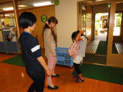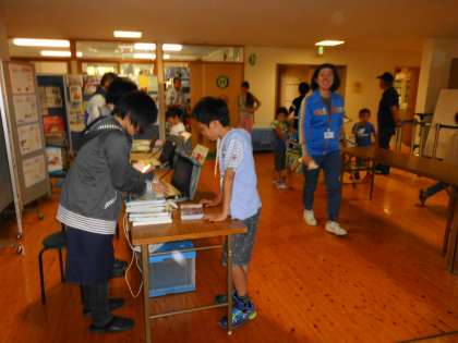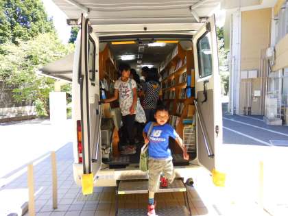 今日は1ヶ月に1回のお楽しみ,京都市移動図書館こじか号が学校に来る日でした。1年生もこじか号に乗るために給食を遅れないようにしっかり食べて待っていました。車の中にぎっしりつまった本を選ぶのはとても楽しいひとときです。選んだ本を受け付けまで持って行く途中にはALTの先生が待ち構えて「How many books?」と1人1人に優しく尋ねます。1年生も習ったばかりの英語で「three books」などと答えていました。