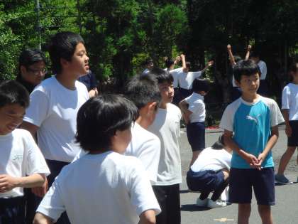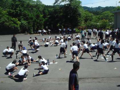 7〜9年生は14日午後からスクールバスで周山中へ。周山中、宕陰中との合同体育を行いました。日差しは強いものの、さわやかな風と青空のまさに運動日和でした。納得のいく記録が出たかな?