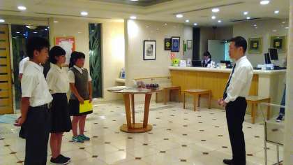1日目の宿泊先・フォーレスト本郷に到着。お世話になるホテルの方にご挨拶。