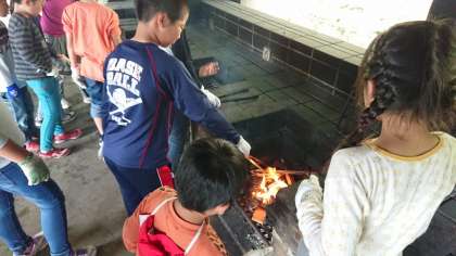 自分で選んだ木を焼き,ピカピカになるまで石やタワシで磨きました。どの木もよい味のある作品になりました。