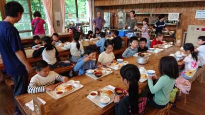 朝の集いの後,清掃をし,朝食をいただきました。今日も朝からもりもり食べています。しっかりとエネルギーを蓄えて, 今日の活動に向けて準備万端です。