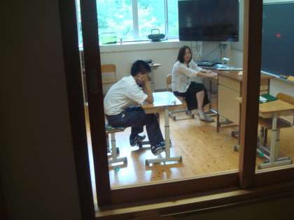 写真は9年が理科、8年が音楽・聞き取りテスト中。