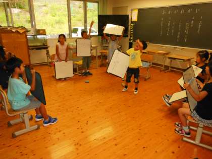 今日でお別れのお友達と1,2年生でお別れ会をしました。手紙を読み合ったり,クイズやフルーツバスケットで遊んだりして,お別れを惜しみました。また会える日を楽しみにしています。