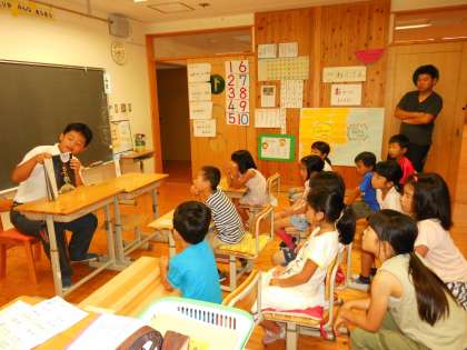 7月の図書委員会も4回目。今日のお話は「お月さまってどんなあじ?」と思わず「えっ?お月さまを食べるの?どんな味するの?」と興味が深まる題名です。内容は「お月さまを食べてみようと思ったカメが高い山に登り,届かないのでゾウを呼び,キリンを呼び,シマウマを呼び・・・。」何かのお話と似ていますね。そう,1年生で学習するロシア民話「おおきなかぶ」のように次々動物が登場します。最後に乗ったネズミがお月さまをかじり,それをみんなにわけてあげます。さて,その味は・・・?