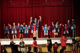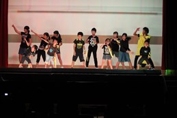 踊りやダンスのパフォーマンス、縦割り発表のようす。
