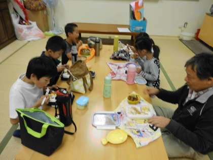 一期の校外学習の日でしたが,天気予報が午前中から雨とのことで,迷った末延期しました。登校時は残念そうな子どもたちでしたが「お弁当が2回食べられる。」「おやつが2回もらえる。」と良い点を見つけて,だんだん元気になってきました。お弁当もいつもの「みんなのリビング」ではなくて色別に思い思いの場所で食べることができ,最後には「雨降ってよかったかも?」とにっこり笑顔でおうちの方の心のこもったお弁当を味わっていました。行事が続きますので何度もお弁当をお世話になります。ありがとうございます。