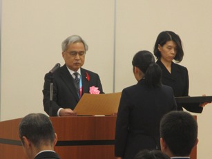 昨日、9年生のT.Sさんが、左京区役所でおこなわれた「税についての作文」の表彰式に参加してきました。本校の9年生は、毎年夏休みを利用して「税についての作文」を書いて応募しています。今年は、T.Sさんが左京区長賞に選ばれました。式典では、左京区内の中学校・高等学校の受賞者に交じって、少し緊張しながらも堂々と賞状を、左京区長様から受け取っていました。
