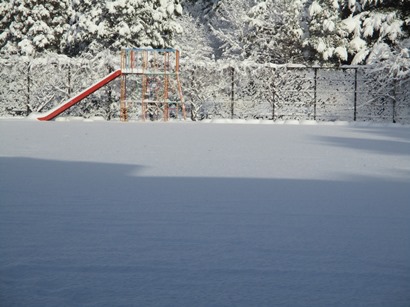 平成30年がスタートしました。本年もどうぞよろしくお願いいたします。2日から雪が降っていたとのことで、年末には10cm程度の積雪だったグランドは、写真のように約25cmの積雪で一面銀世界です。授業が再開される9日は、雪の中の登校となりそうです。