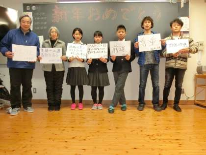 三期では、各クラスで「今年の目標」を書き、9年教室に集合して発表しました。