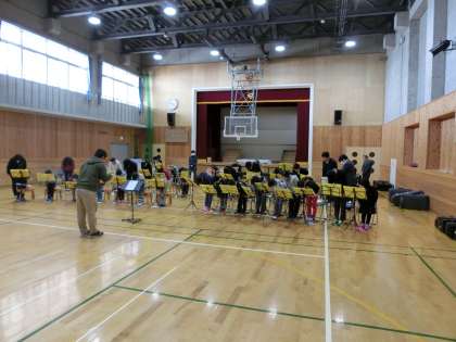 今日の練習は「世界に一つだけの花」を重点しました。9年生は卒業まで3週間をきりました。1年生からやってきたわくわくバンドの練習もいよいよ2回のみとなりました。9年生を筆頭に礼に始まり,礼に終えることができました。体育館では吐く息が白くなるので温度計をのぞいてみると,なんと4.5度でした。とても寒い中にもかかわらず,とてもいい演奏ができていましたね。