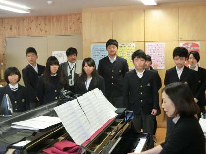 本日の2時間目は,卒業式の歌と演奏する曲を練習しました。まだまだ,未完成な部分が目立ちますが,一生懸命に取り組んでいます。当日までの音楽の時間はあと2回です。自主練習を重ね,本番では最高の演奏で9年生を送り出せるようがんばりましょう♪♪♪