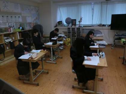 定期テストも2日目に入りました。1年生から6年生は本日で終了です。7年生と8年生は9教科なので明日まで続きます。今日のテストに向けて,最終の準備をしているようすです。テスト本番でも練習通りの力を発揮してください。