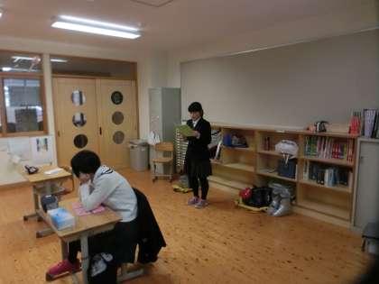 地域の日にむけて,卒業論文の読合せをし,内容の確認をしています。9年間お世話になった花背校の関係者,地域の方々,そして保護者の方へ,本校での歩みをどのように発表できるのか,みなさんが楽しみにしています。100%の準備で当日を練習のように本番を迎えてくださいね!!