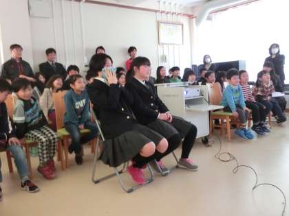 4時間目には全校児童生徒での9年生を送る会・第二部を実施しました。まずは,お世話になりご退職や転勤された先生方からの「おめでとうメッセージ」に感動し,涙を流す2人。つづいて,児生会の役員の手作りの卒業アルバムを受け取り,最後には在校生からの卒業メッセージがかかれた寄せ書きを受け取り,全員で記念撮影!!もちろん,ここでも感激の涙です。
