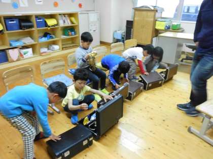 明日は第1回のわくわくバンドの練習日です。初めての1年生も参加できるように,事前練習をしました。持ち方,姿勢,構え方,吹き方を金管の先生からていねいに教えてもらいました。2年生にお手本を見せてもらって,1年生も音を出すところまでできるようになりました。片付けるときも,2年生が「楽器さん,ありがとう。」と言いながら片付けるのを真似しながら,ていねいに片付けることができました。
