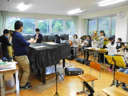 運動会に向けて,登校後音楽室や教室で金管の練習をしています。少しずつ音がそろって力強く演奏できるようになってきています。