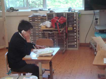 19日〜22日の体験前に事前訪問させていただくことになっているのですが、そのために体験先に電話でお願いをします。先週から電話での話し方やマナーを学び、自分たちや先生を相手に練習です。