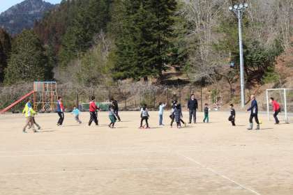 先生たちを誘ってサッカーをする子どもたち,読書に勤しむ9年生,おもしろいこと言わん会で笑いの力を高め合う男子生徒たち,と個々のだんらんを楽しんでいます。