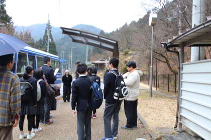 多くの先生が見送りに来てくれたので,あいにくの天気の中でも笑顔があふれています。