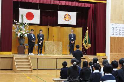 お一人おひとりが,自己紹介された後,3者とも,ここ花背の自然に魅了されたお話をされました。また,子どもたちと関わる中で,子どもたちと共に成長していきたい,たのしい学校になるよう精一杯がんばりたい,みんなが学びやすい環境を整えたい,など熱意ある意思表明をされました。新しく加わった3名の教職員たちと共に,花背小中学校がよりよい学校となるよう,みんなで力を合わせていきましょう!!