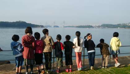 5月10日(金)学習旅行2日目,すがすがしい朝を迎えました。とてもいいお天気です。朝の散歩でホテル前の海岸へ出かけました。