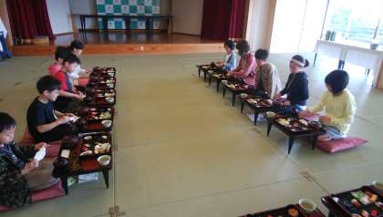 5月10日(金)学習旅行2日目,朝の散歩・朝のつどいの後,夕食と同じ瀬戸大橋の間で,朝食をいただきました。今日の活動に備えて,お腹いっぱいいただきました。